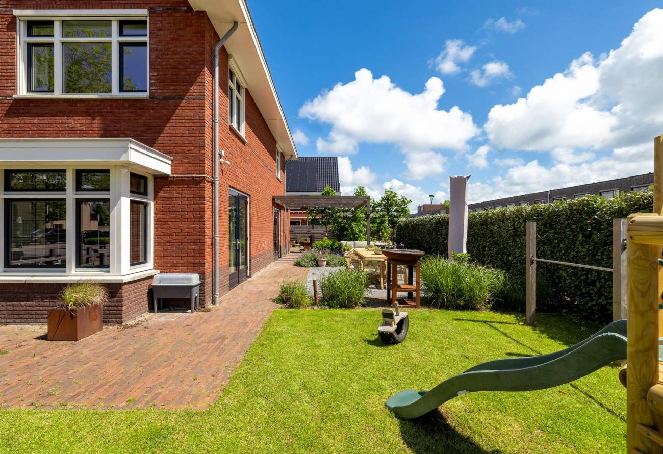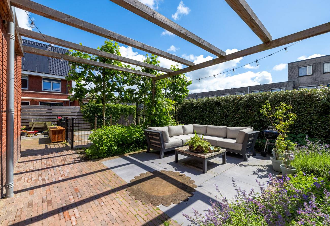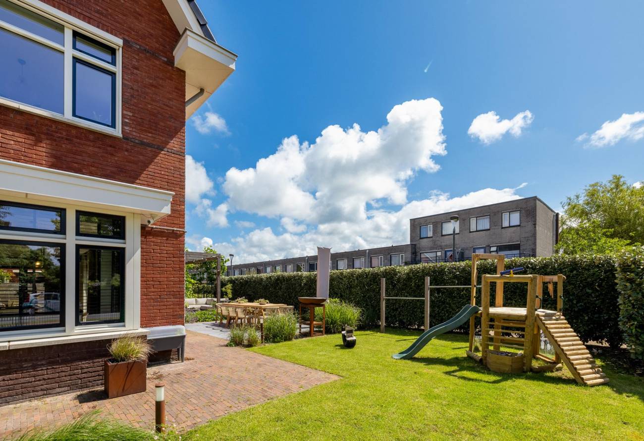 De fraaie tuin rondom de woning heeft een sfeervolle pergola en diverse terrassen om te genieten van de zon of juist van de schaduw. Of je nu wilt tuinieren, spelen met de kinderen, of gewoon ontspannen, hier kan het allemaal. Op het terras, gelegen aan het water, is het heerlijk genieten van de zon en het fraaie uitzicht.