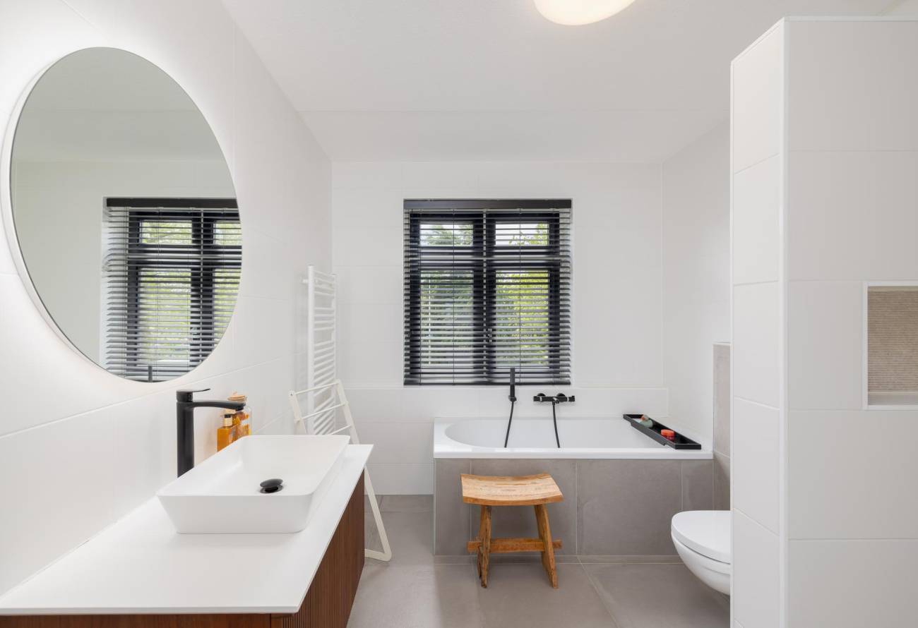 Op de eerste verdieping vind je drie ruime slaapkamers, elk met voldoende kastruimte en raampartijen. De luxe badkamer is uitgerust met moderne voorzieningen en biedt een heerlijke plek om te ontspannen na een lange dag.