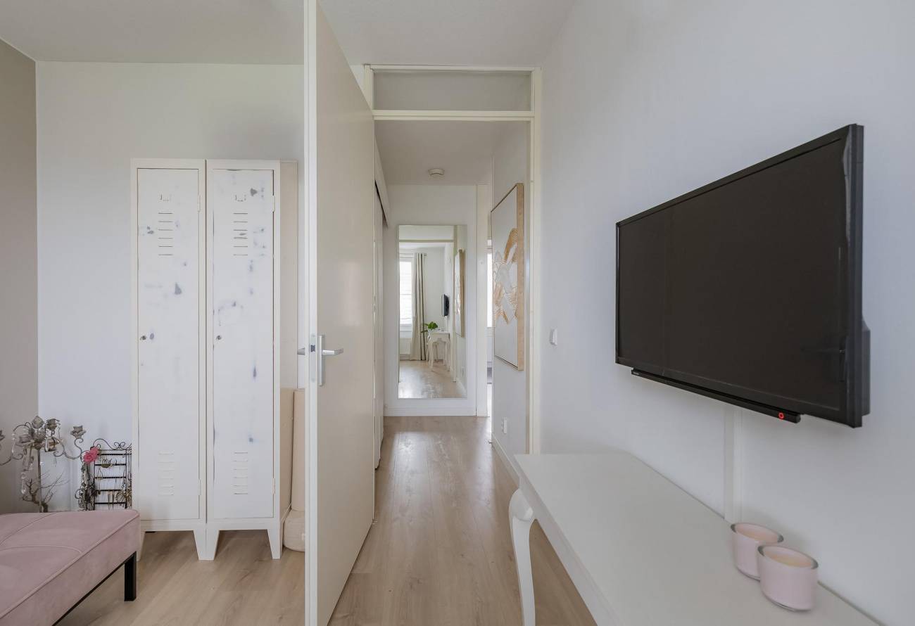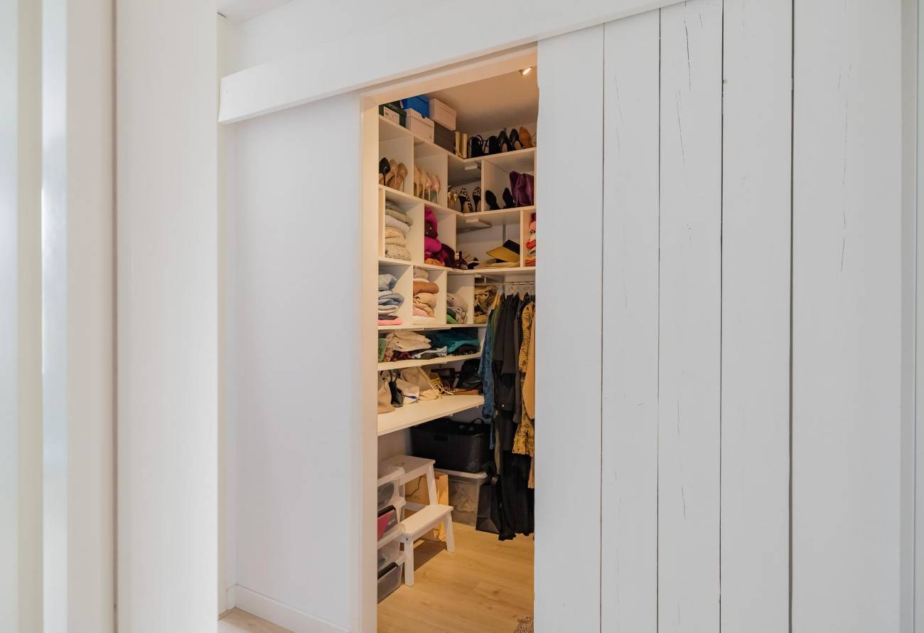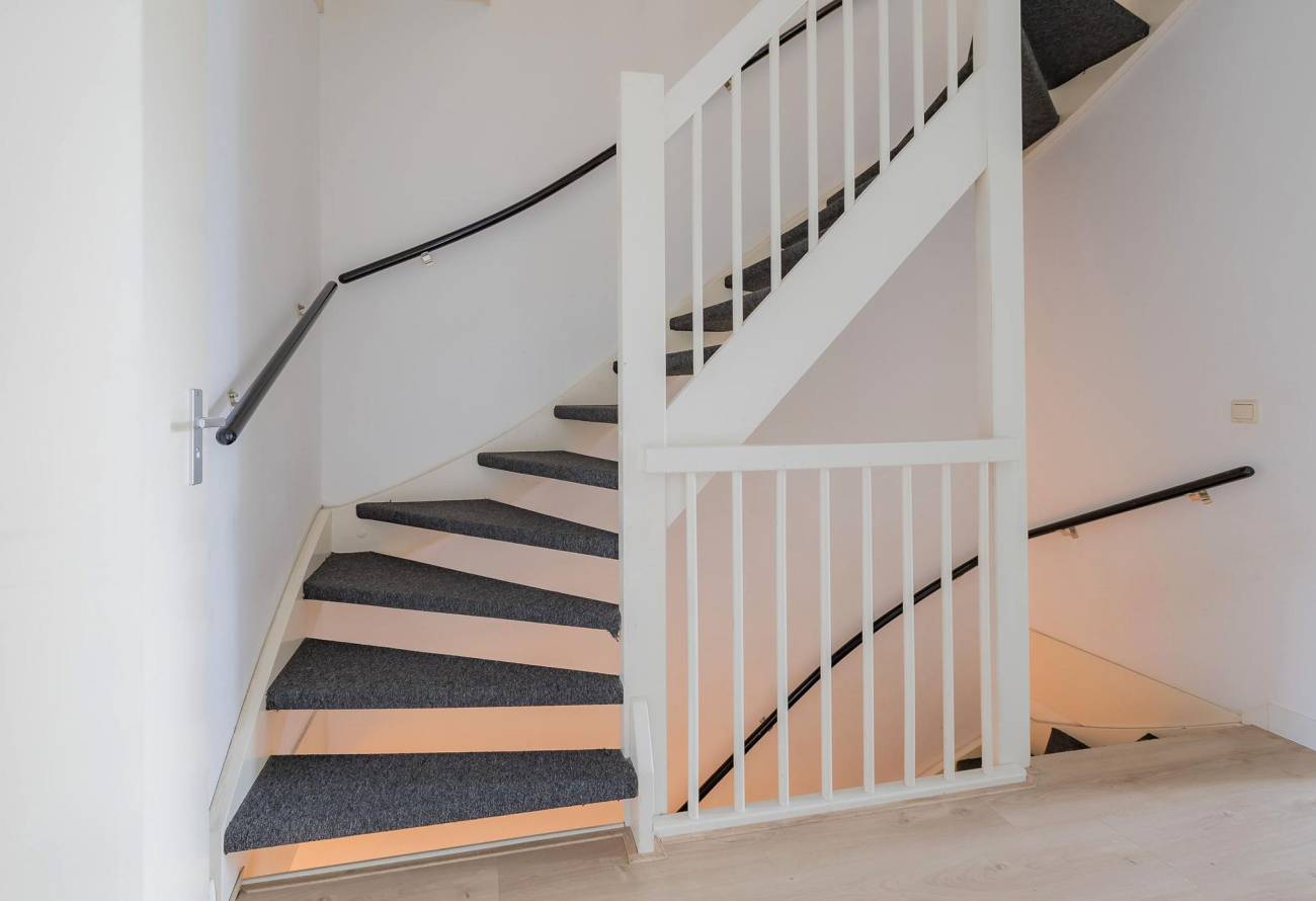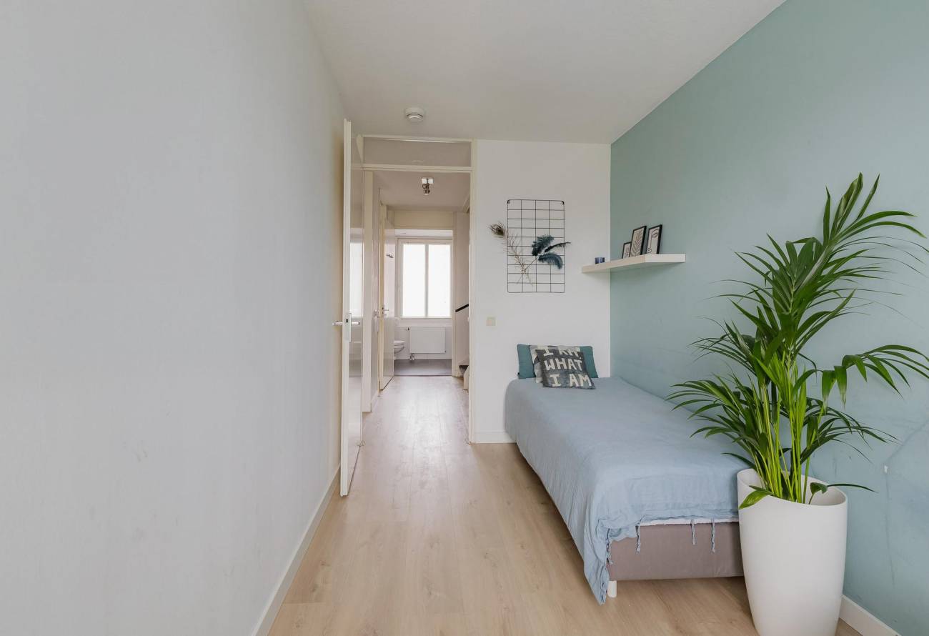 Op de eerste etage tref je drie slaapkamers, waarvan één met een royale inloopkast. De moderne badkamer is uitgerust met een inloopdouche, tweede toilet en een stijlvol badkamermeubel. De hele verdieping is voorzien van een strakke laminaatvloer. De slaapkamers aan de zuidkant houdt je lekker koel door de rolluiken.