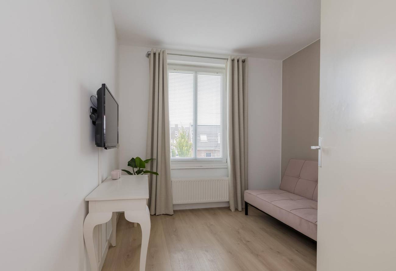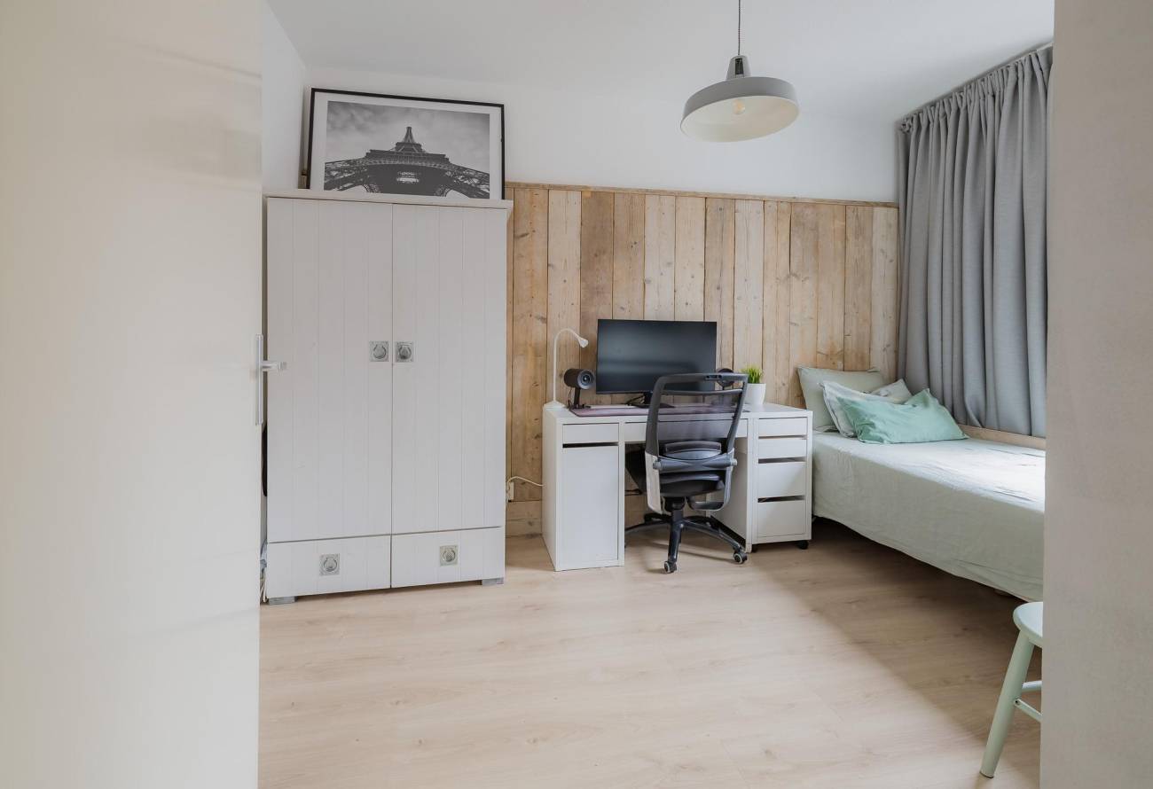 •	Stalen deur, houten vloer en moderne badkamer: direct instapklaar;