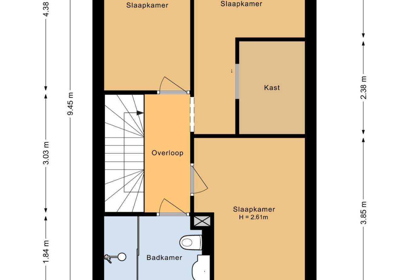 | Badkamers | 1 badkamers, 1 aparte toiletten |