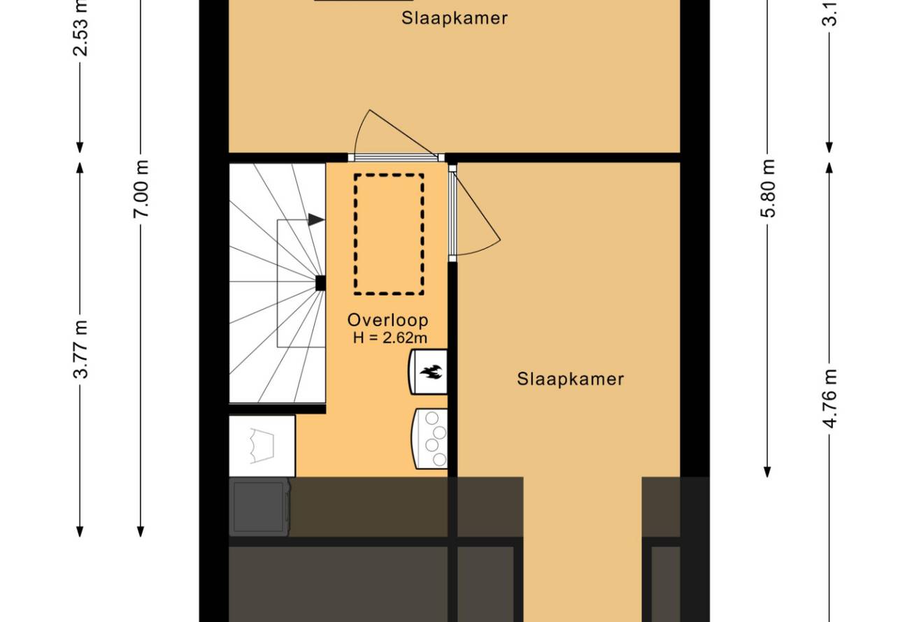 Via een vlieringtrap is de vliering bereikbaar. Deze is over de hele breedte van de woning.